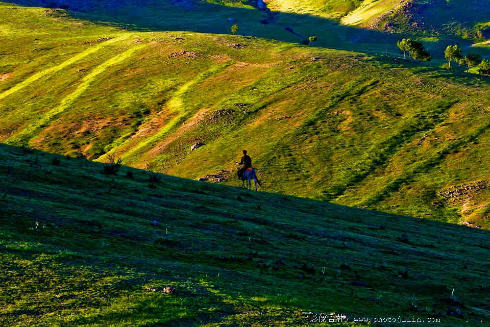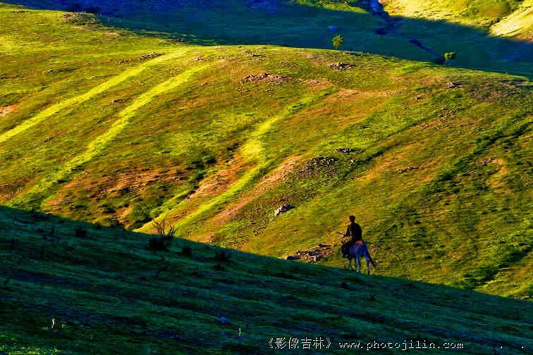 漫漫山野,唯有独骑,而且还是离去的背影。粗线条的表现一种凄凉感受。