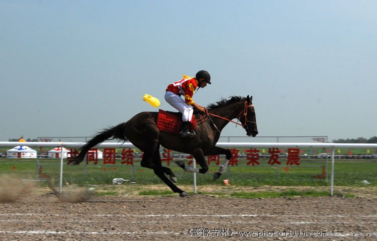 漂亮,抓的精彩。马的奔跑姿态和骑手的配合表现得很突出,好片!