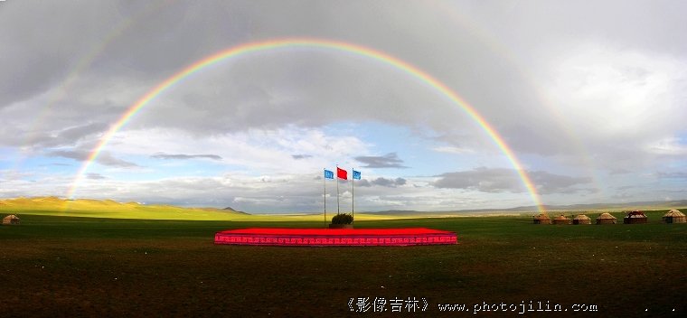 漂亮的彩虹落在了宽广无际的大草原上,非常美!学习~~