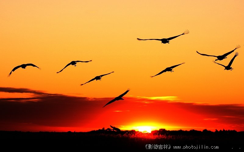 豁亮,清晰,飞鹤剪影,姿态优美,位置适当,漂亮之作。