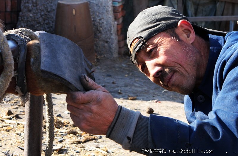 是给马穿小鞋的,这个场面在我们这里已经很少见了。珍贵镜头。