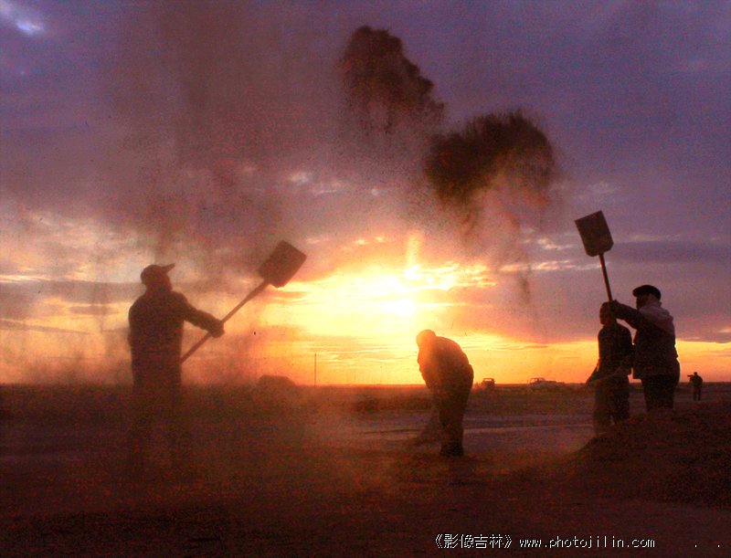 父亲和乡邻们忙碌着