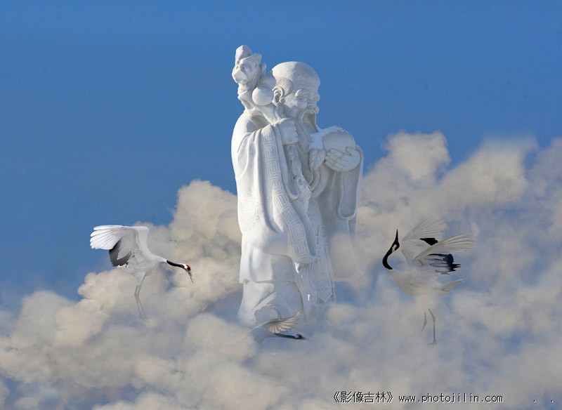哈哈,祥云仙鹤,吉祥如意,寿比南山。后期高手。