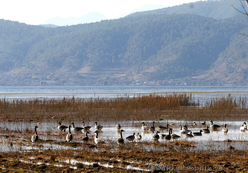 眼下是雁,眼前是村庄,一幅人与自然和谐的片。