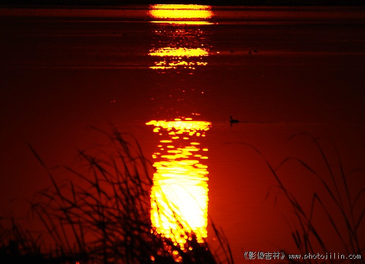 映在水中的夕阳
