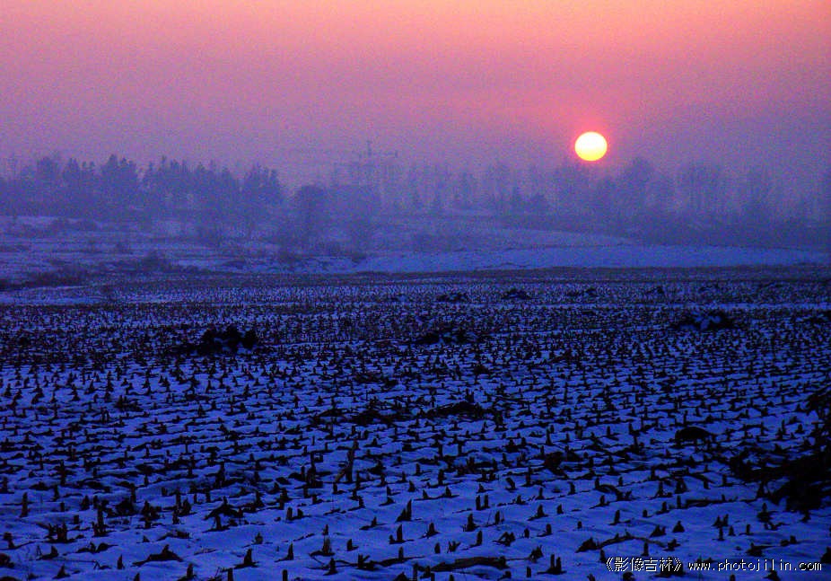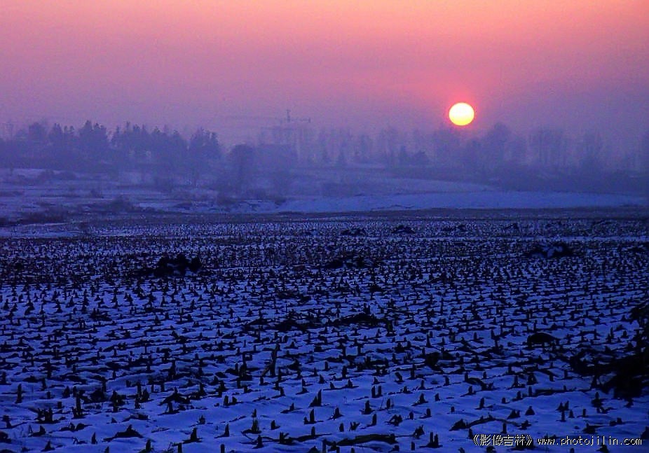 雪地霜天,万籁俱静;夕阳将尽,飞鸟入林。北方的冬季,寒冷而漫长。佳作,欣赏。