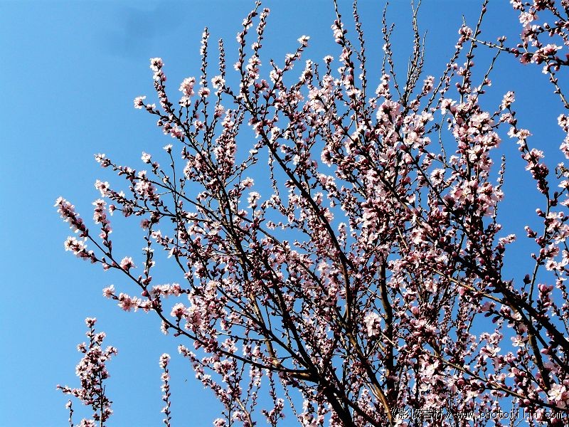 迎春桃花映日红