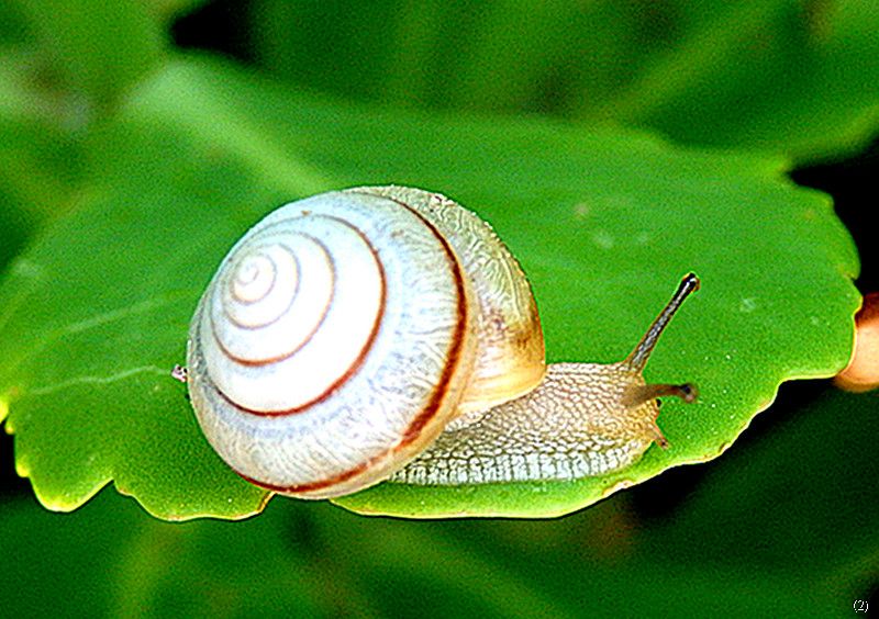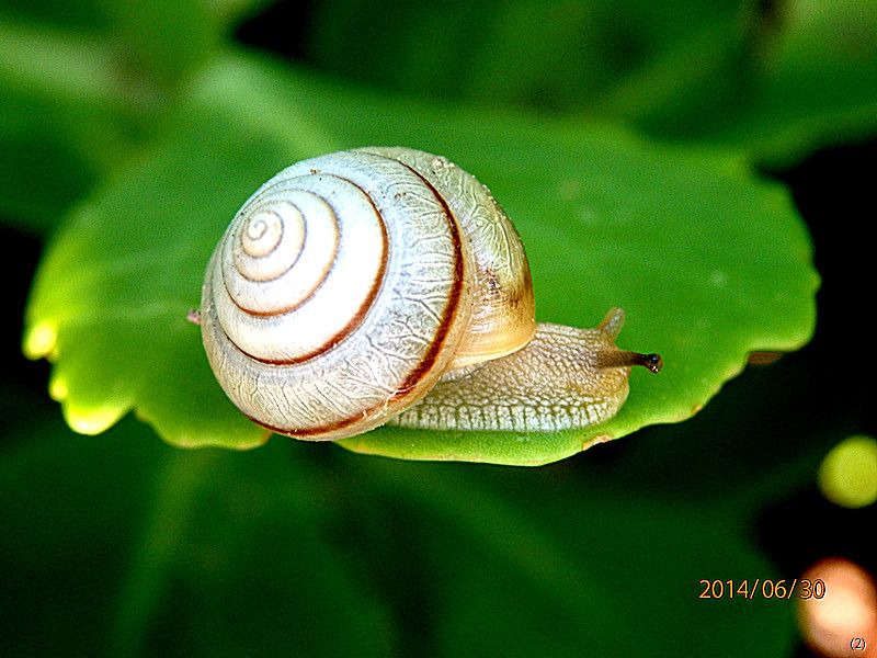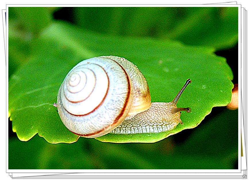 蜗牛以行走缓慢著称,不论在海洋、江河还是陆地只要是湿润的地方都有他们的踪迹,这不、虽小却也攀爬到了花叶之上··· ···