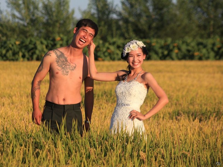 这是前两天在去洮南路边稻田,为新人拍婚礼前花絮。