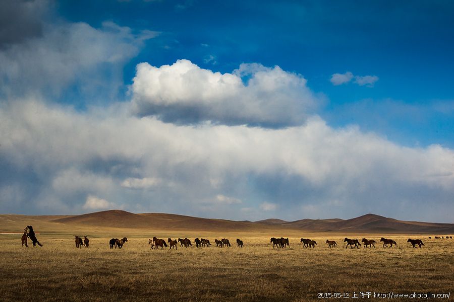 蓝蓝的天上白云飘,白云下面马儿跑。。。。。。经典的草原大片,漂亮。