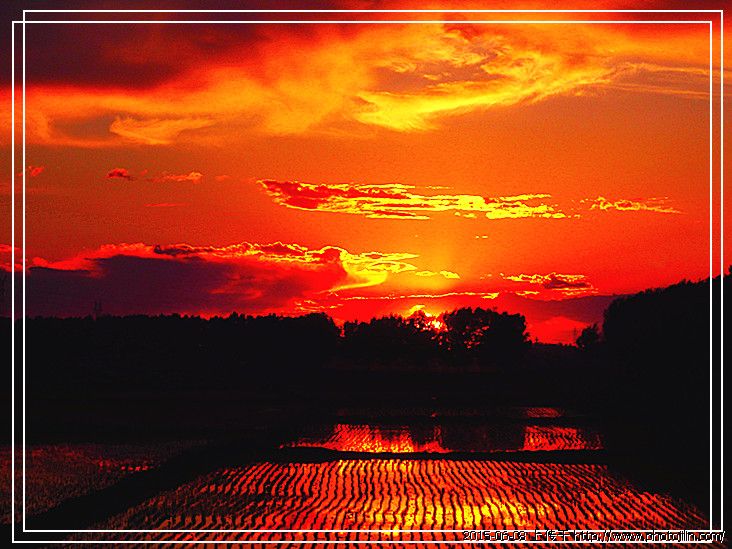 回傲骨老师、拍摄那天真是难得的机会、晚霞就那样的红、映在水田里天地难分了,