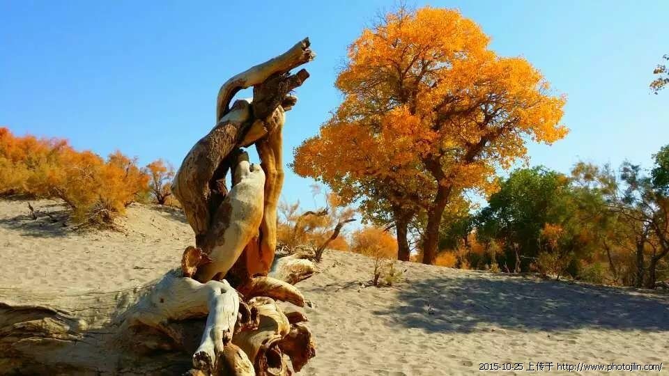 英雄的胡杨 说美丽的胡杨,不屈的胡杨我都诚服。如果说“英雄的胡杨”,我的心里真的有些狐疑!后来了解,这英雄的胡杨皆源于张老谋的那部著名的影片《英雄》在此拍摄。于是人们便取其意,称胡杨林为”英雄林。”思想起来,倒也不负其名。