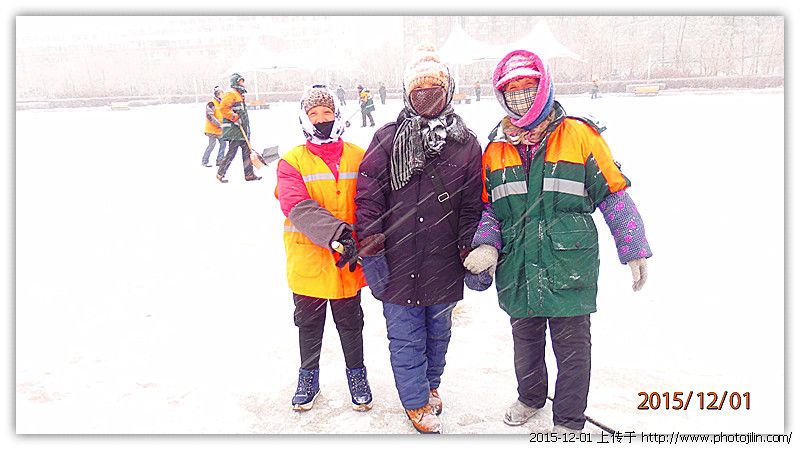 风雪里的环卫工