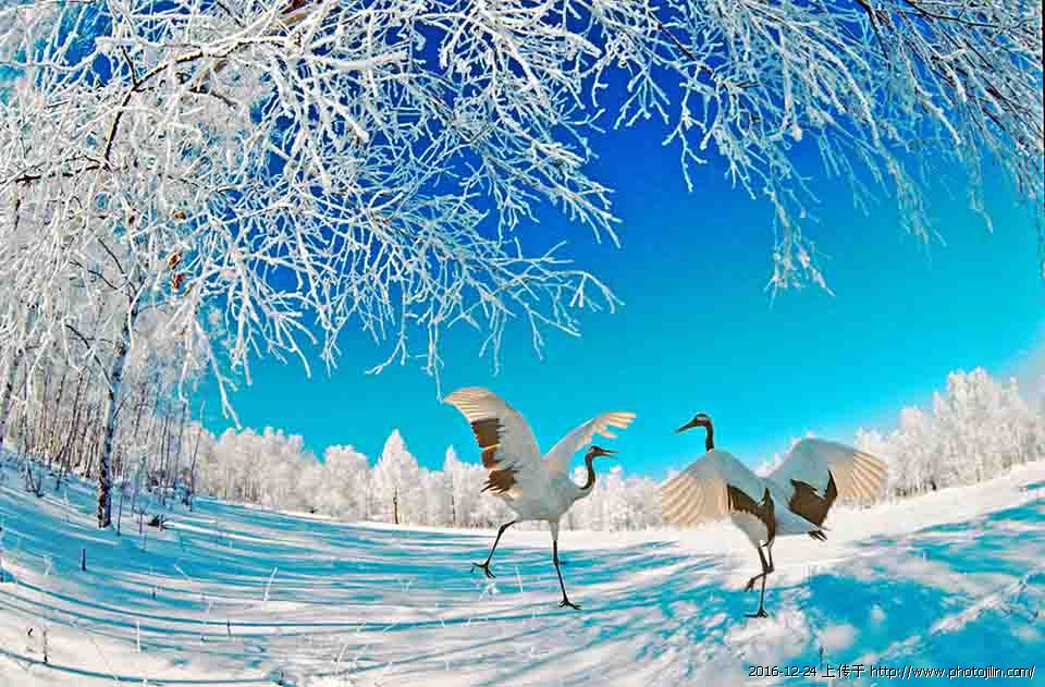 雪地鹤舞,艺术处理的漂亮。