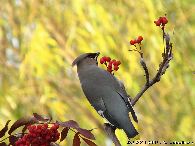好拍摄,抓住太平鸟回眸的瞬间,赞!