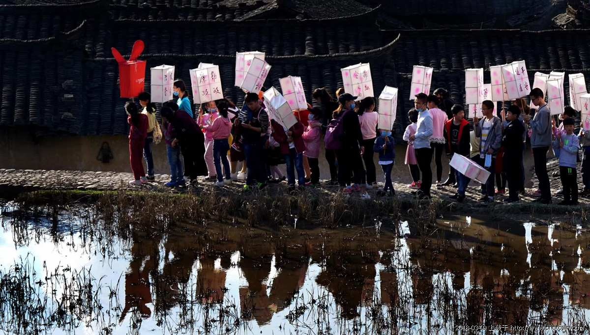 每逢正月,我都要争取出去创作,今年又与影友来到了福州龙岩,参加了陈伏容老师的团队。这里年味很浓,每家每户都是张灯结彩,到处鞭炮齐鸣,锣鼓喧天。同宗同族到祠堂祭祖,舞龙队挨家挨户拜年,人们抬着关老爷逐门逐院送财神。最热闹最吸引人的还是“游巨龙、闹春田和走古事”。给我们留下很深印象的是,有些成百上千人参加的活动大都是二三十岁的年轻人。他们有的是在当地工作创业,有很多是在外地创业打工。据了解,除了有乡村行政要求外,更重要的是有宗族的凝聚力。这次龙岩之旅,给我们留下很深刻的印象,就是客家人古道热肠,民风淳朴。我们所到之处,都受到主人热情接待。给我们沏茶,品尝米酒,拿出干鲜果品招待我们。因拍照有时需上楼顶,只要跟房主打个招呼,他们就会热情把你带上去。短短的几天,让我们了解了客家文化、客家民俗,从而深深的爱上这里。
