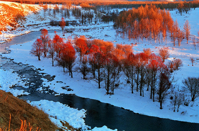 很美,阿尔山的风景很美,不冻河的红白色彩很美,什么时候拍的,是今年吗