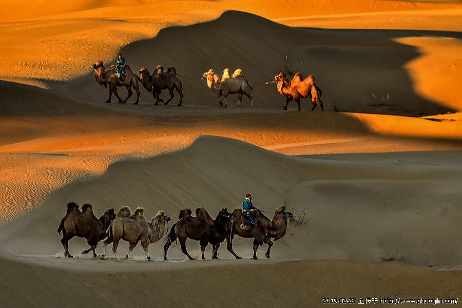 拍摄的清晰通透,构图有些发散,主题没能凸显。建议上下分开,各是独立一幅画面。个人之见,供参考。 傲骨 发表于 2019-3-1 18:52:22 感觉傲骨老师说的很好,画面看来是ps的结果,从透视关系看,你的 前景和背景的区别几乎没有。建议背景的 骆驼队p小一些远一些。其实你这两张片子单拿出来都很好。