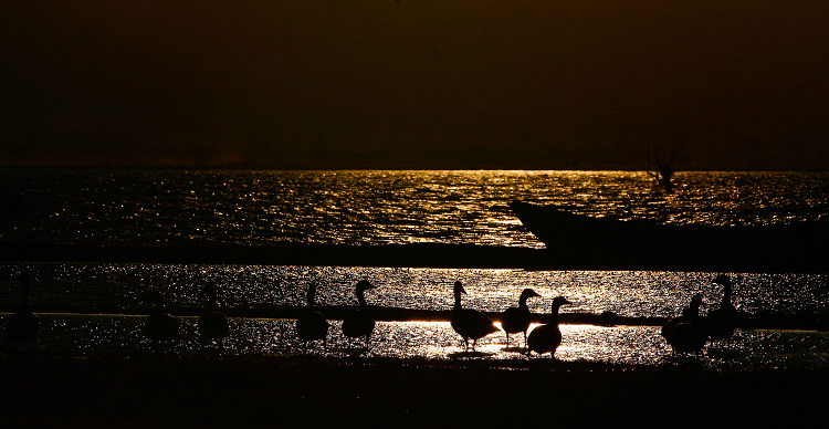 沉寂的夜色,浩淼的水面,生动的雁影,激发观赏者无尽的遐想,“水乡夜曲”