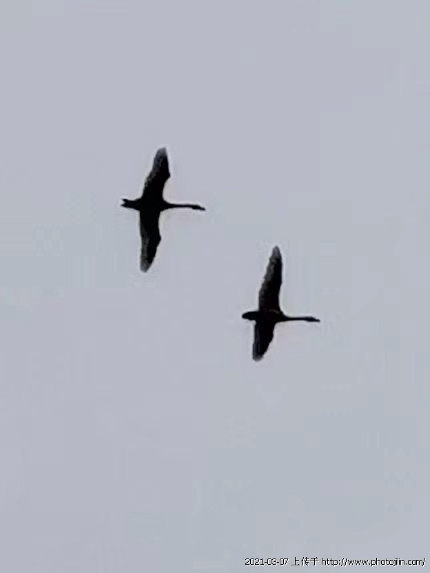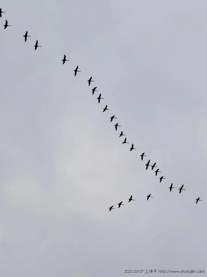 据玉田考证,这是天鹅。大雁没有这么长的脖子、这么优美,体型也比较大。天鹅脖子修长,特别漂亮。迁徙中也是排队的,有领飞天鹅,要降落时队形才散开。这么大群的天鹅很难见到!