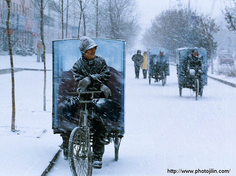 风雪车夫 左顾右盼寒雪中, 廖落行人沐凄风. 谁能为我第一客? 赚得小钱好谋生!