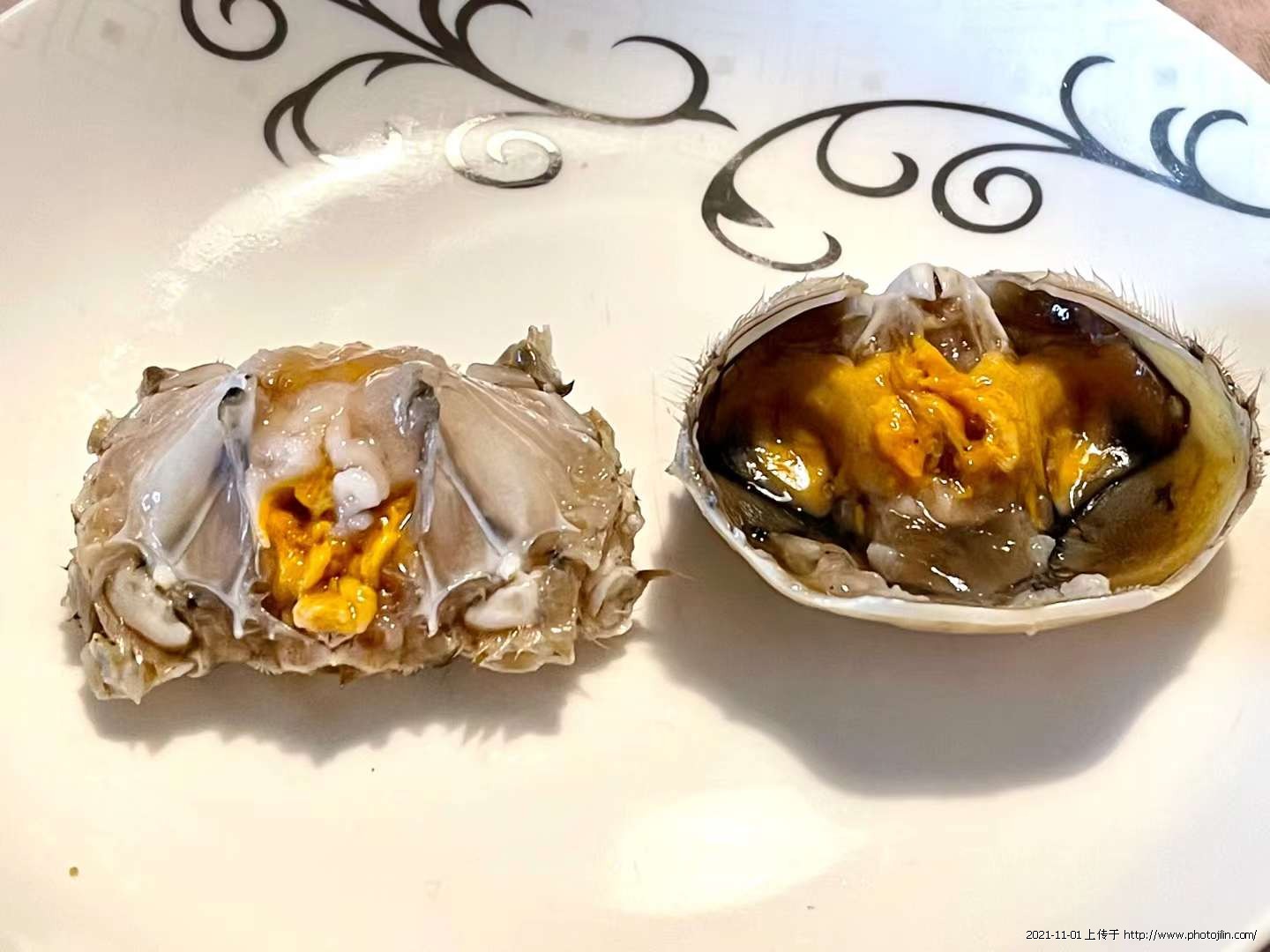 今年国庆后,我买了几斤螃蟹,在水里泡几个小时,洗一洗泥土,放进坛子里,倒入适量的高度白酒和花雕酒,盖严坛口,时不时地翻动翻动,让螃蟹们均匀地醉上几个小时。把醉了的螃蟹取出来,酒也倒出来。醉了的螃蟹不再张牙舞爪,把它们洗得干干净净,摆在深一点的盆里,蟹壳朝下,肚脐朝上。醉蟹的酒,重新沟兑,放入适量的白开水、花椒大料水、葱姜水、糖和盐。味道,自己品尝,酒味可以浓一些,特别是花雕酒多放一些,糖和盐也要多一些,醉汁要咸一些。兑好的醉蟹汁倒入盆中,没过螃蟹即可,封好盆口,放进冰箱冷藏。