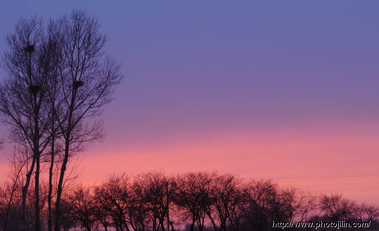 晚霞下的蒙古黄榆