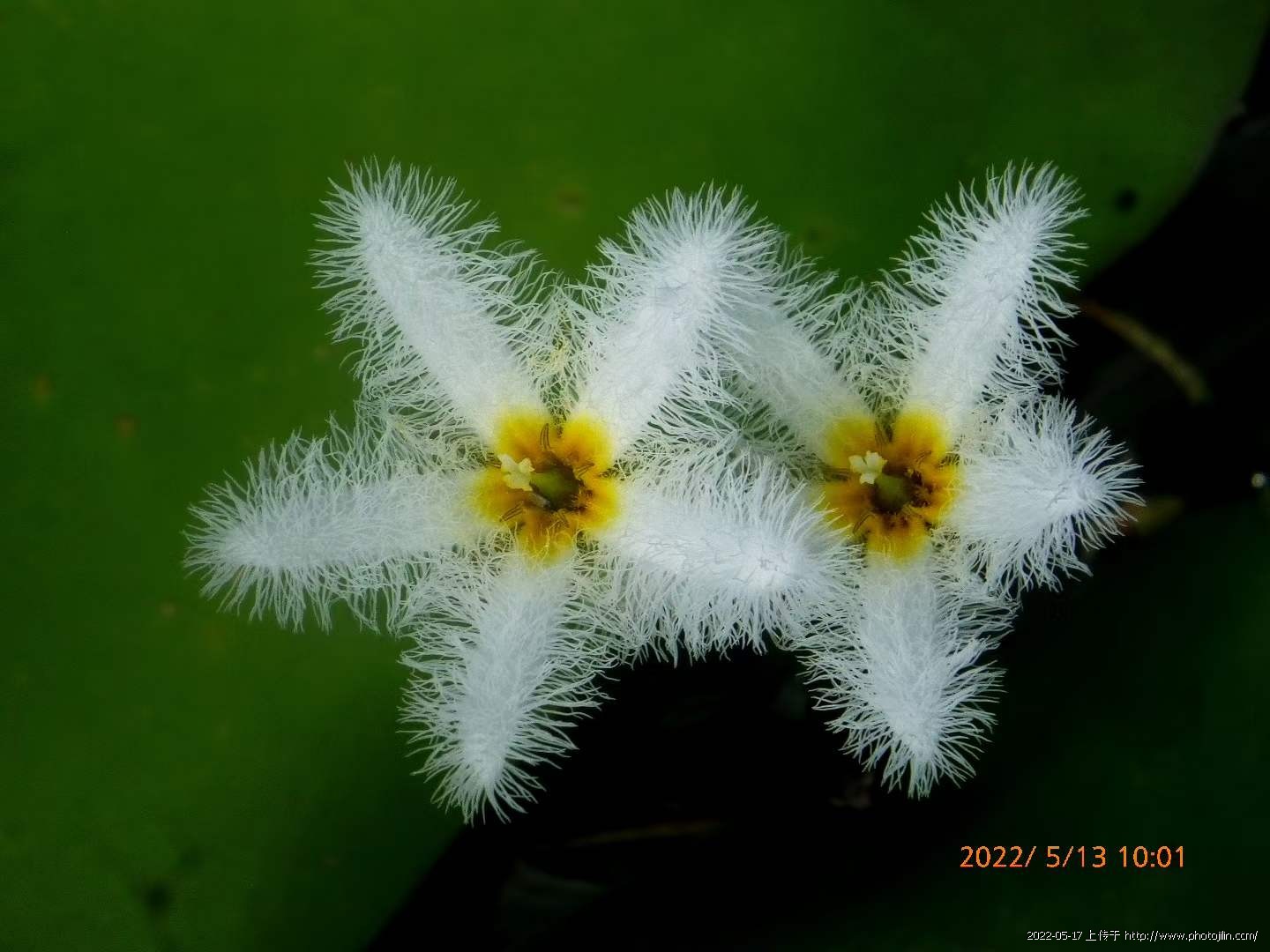 朋友們好!社區的(一葉蓮)開花了,一葉蓮喜陽光日照,開白色花朵,葉子翠綠花朵常開,它漂浮在水面上和普通的浮萍一樣,只要有陽光就會不斷蔓延。祝福大家愉快!