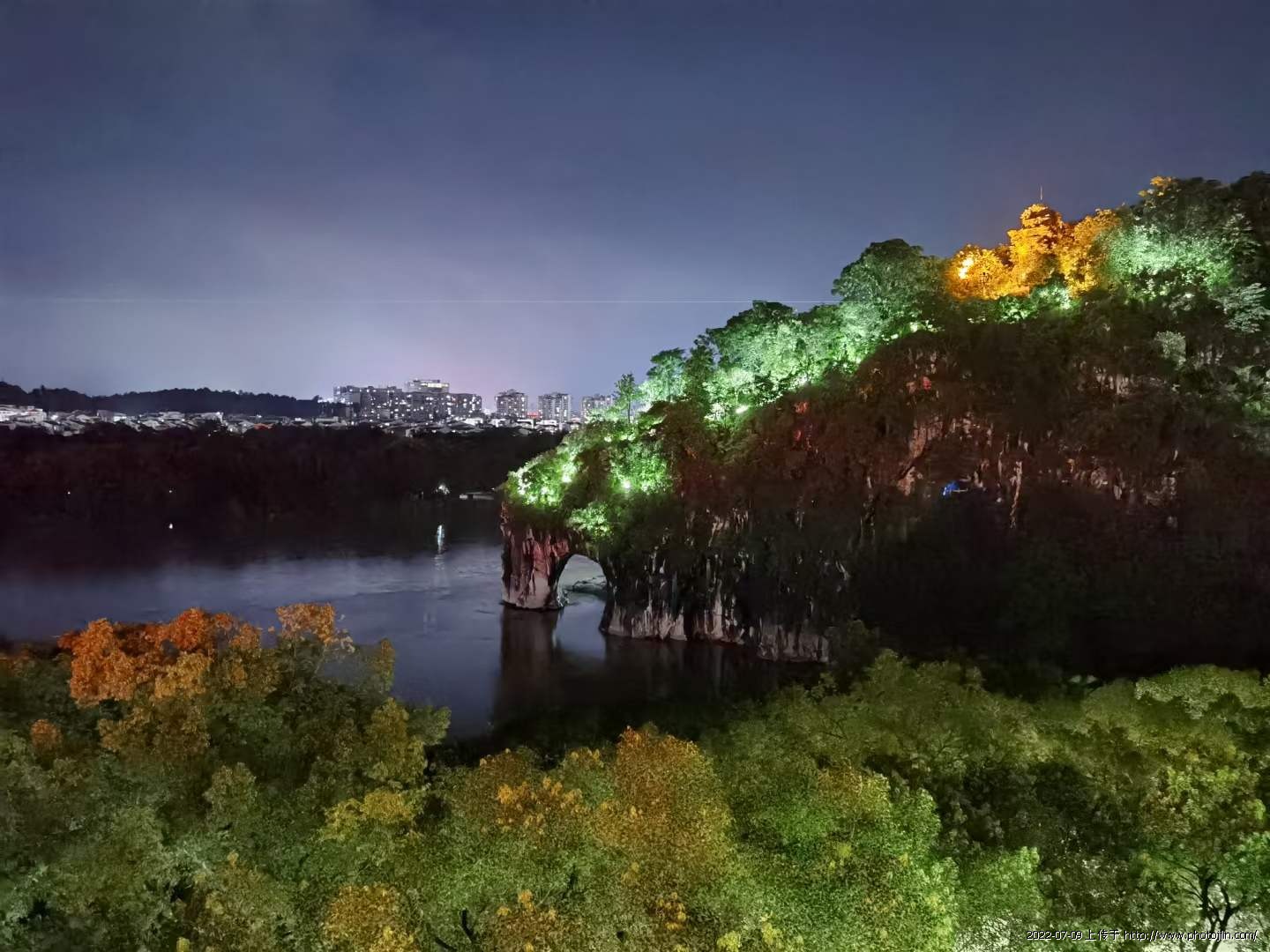 漓江有象谁成就,一亮山灯见普贤。