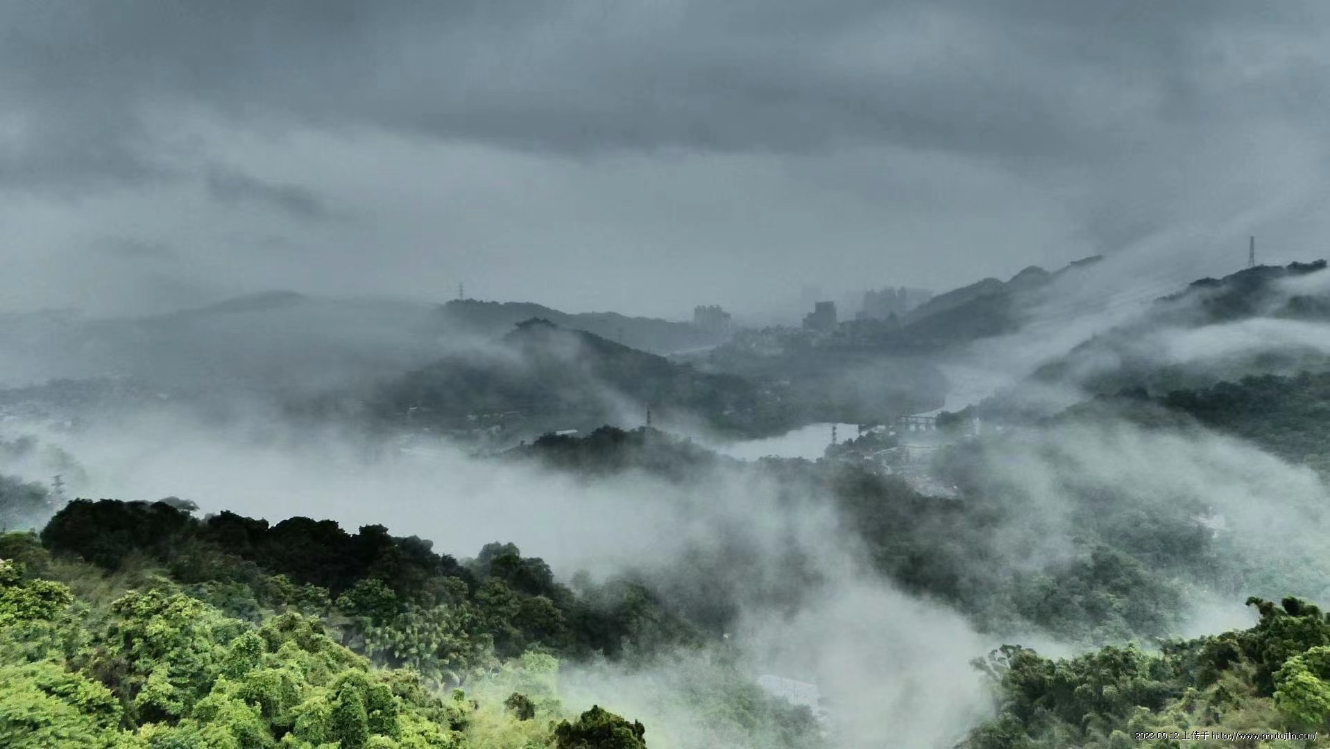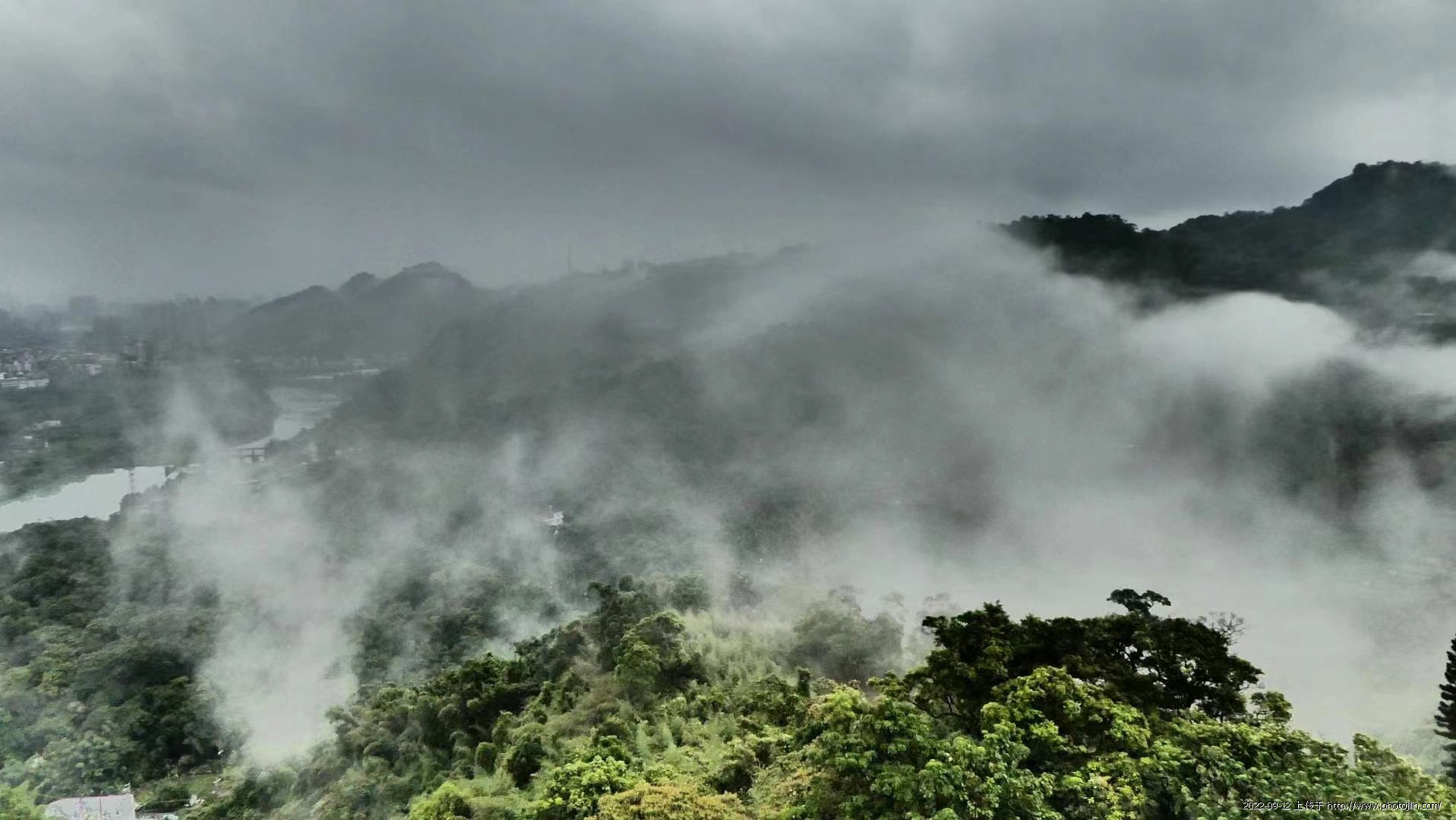 台北今天受(梅花)颱風外圍影響,整天風雨不停,滋潤大地,造就美美山景……。