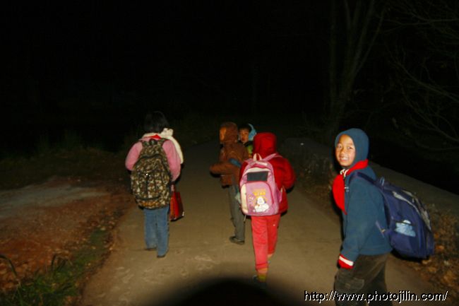 当天不亮,人们还在酣睡的时候,这里的孩子就踏上上学的路。他们要在黑暗中走小路,翻过一座大山才会到达一个小学校。这条希望之路要重复的走上几年。