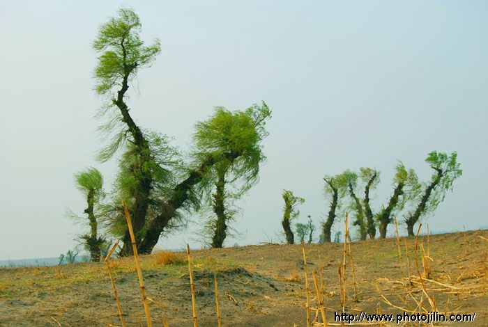 原来的柳林大部份已变成农民的耕地.除了被砍伐掉的,还有的被火烧火烤......