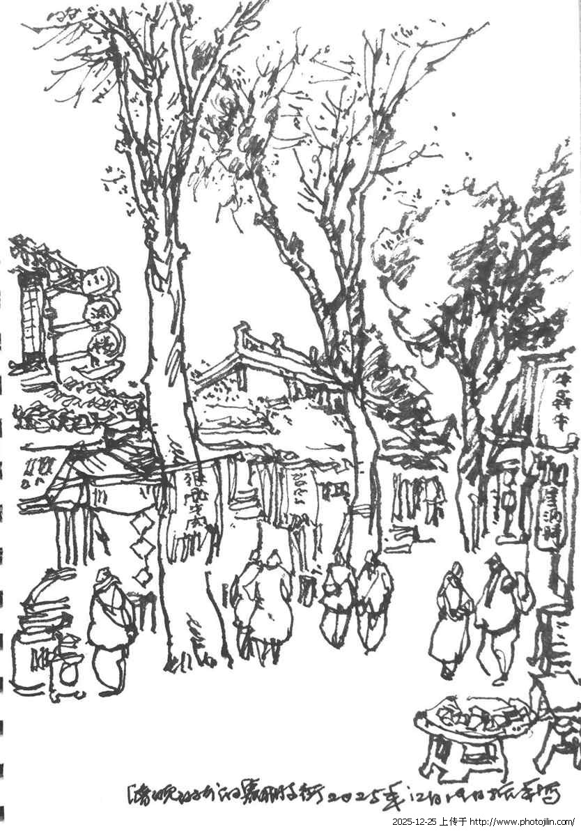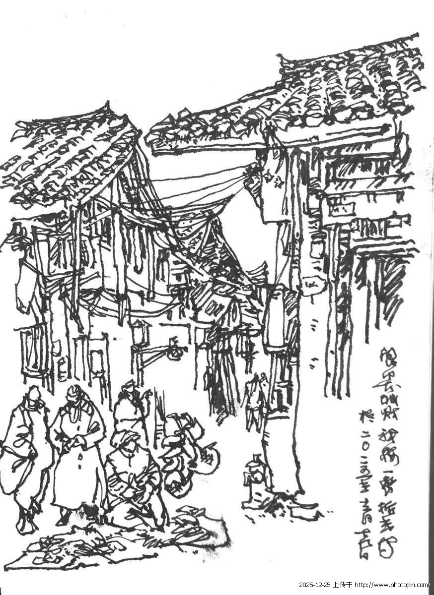 傍晚的夕阳,将嘉陵江畔华光楼码头,以及岸边的茶楼折进水里,我借个板凳,将速写本横在膝上,将茶楼观景台上的品茗人迅速收进画本里,与他们一起,在倾听江轮汽笛鸣响的同时,也回味着古城历史的沧桑与巨变……,那一刻,我明白自己不是记录者,而是被古城选中的回声者——它借我的线条,把千年的低语传递给下一个路过的人。