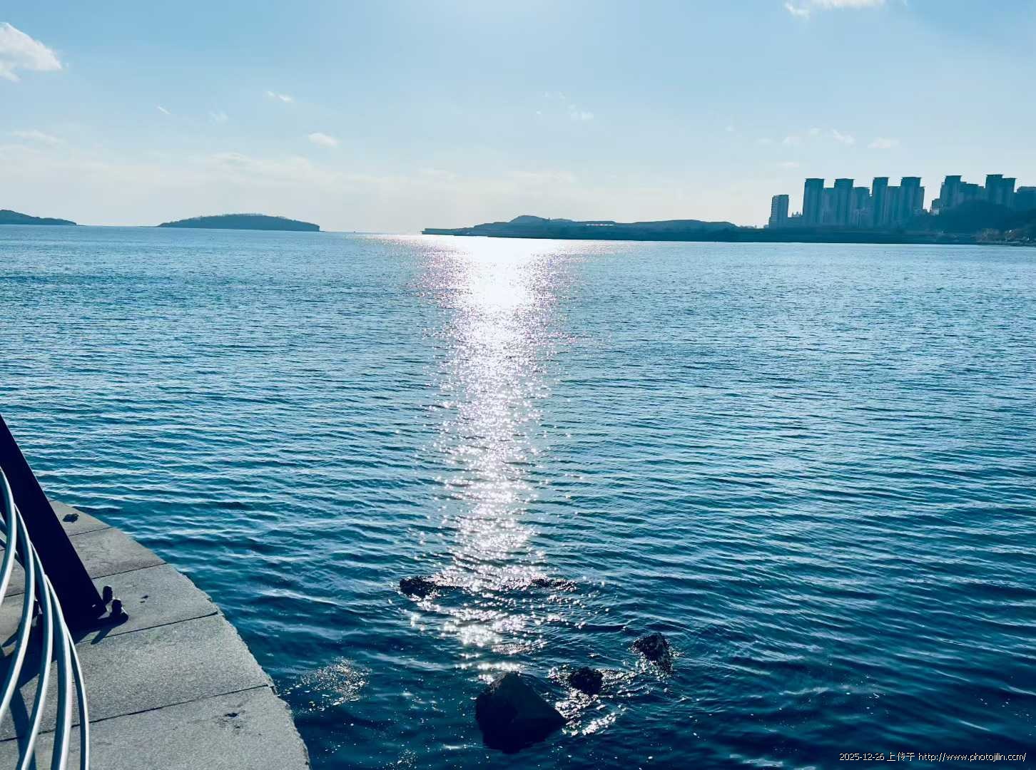 站在蔚蓝的大海边,目光被这片澄澈的蓝层层铺展的海面牵引,阳光碎成银箔洒在波心上,晃得人眼睫都跟着轻轻颤动。远处的小岛静卧在水天之间,码头的渔船、延伸的栈道,还有对岸错落的楼宇与跨海大桥,都成了这片海的温柔陪衬。