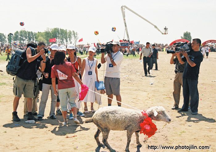 采访的是人,可戴花的可是那只羊。哈哈 先生没有同时再拍张距离羊脸近点的特写吗,背景陈上记者们的采访,“焦点”访谈的意思不是更为突出了来。 右两步,下蹲30CM,绳子出来,光线应该没问题——“焦点”访谈