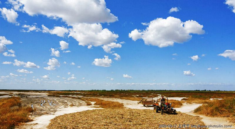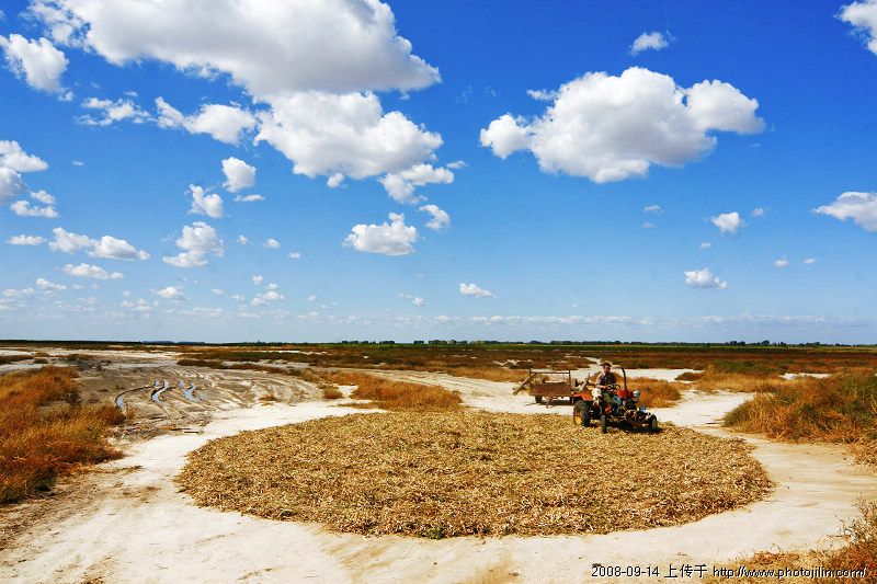 拖拉机在做什么呢? 是在脱粒吗? 真好玩 去云南的时候 看到当地人把蚕豆秧放在街道上 让过往的车辆帮他们碾开蚕豆外面的硬壳...... 大黄蜂的图片真美 如果将拖拉机以下的图片部分剪切掉 蔚蓝深远的天空和半圆形的碾粮场地将会点亮读者的视觉 这样处理,图片会不会更有意境呢 呵呵 这是一张看后令人愉悦的图片 赞一个