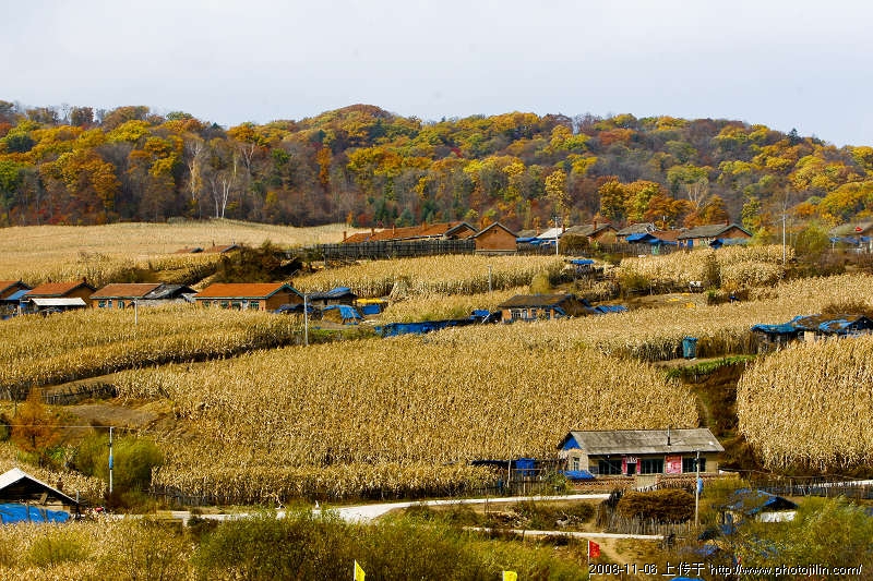 明亮的蓝色房顶 好像一簇簇跳动的火苗 使整个画面充满了生机 —— 好一个秋色山村啊 赞