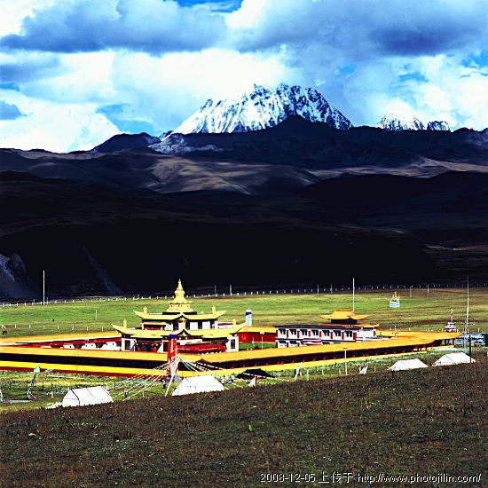 川西高原群山连绵,能称得上草原的不是很多,塔公草原算是较大的一块儿了,远处亚拉雪山和眼前班禅二世的灵堂是塔公草原上的特别景致。使草原披上了神秘色彩。