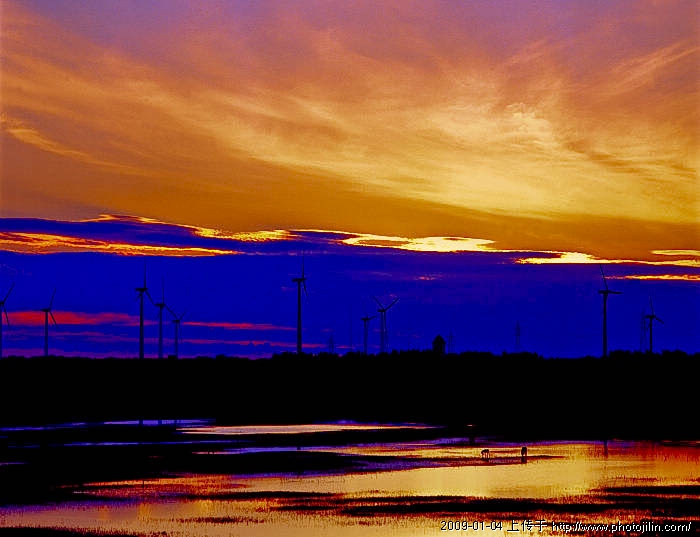 大鳄能够感觉到 氓对自然有一份亲近 这种亲近是不由自主的 当看到两只小东西 在风力发电机的森林里饮水时 氓的心情可能不是辉煌建设中的喜悦吧 题目《远去的荒野》 充满了对自然荒野的无限留恋 大鳄看了就想掉眼泪