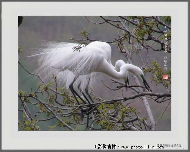 在拍摄白鹭的过程中我时时的被白鹭伉俪的温馨情感所折服,特别是在筑巢时,当一只白鹭衔回来一个树枝时,另一只则马上迎接上去,两只共同用嘴抬着一起筑巢,非常让人感动。