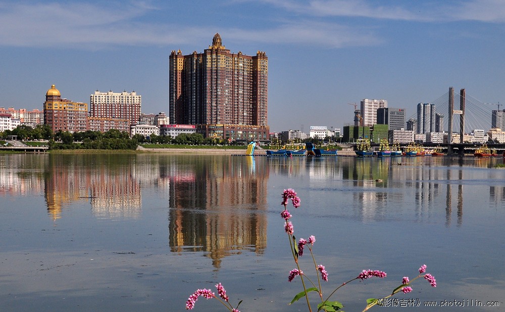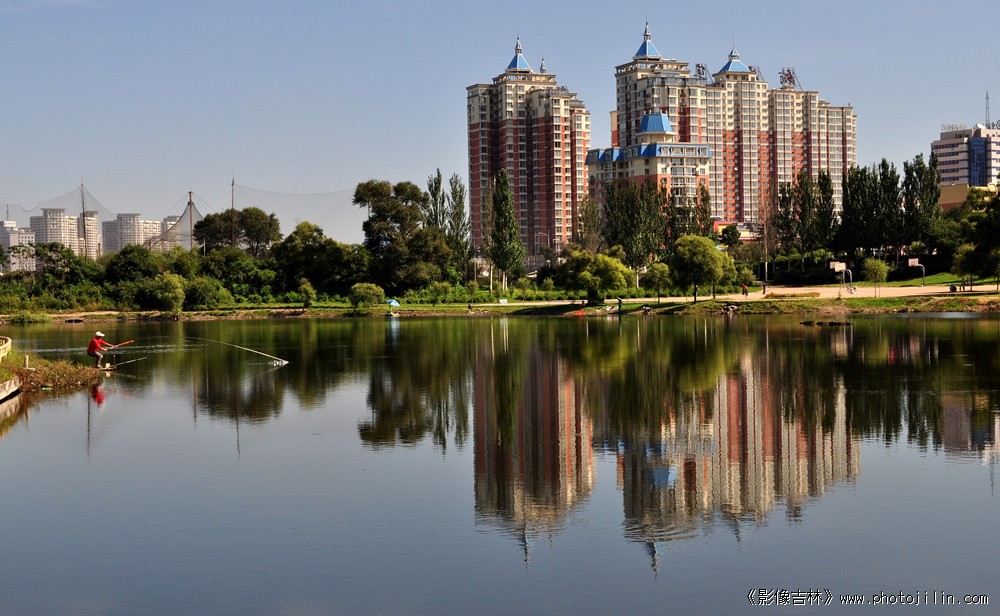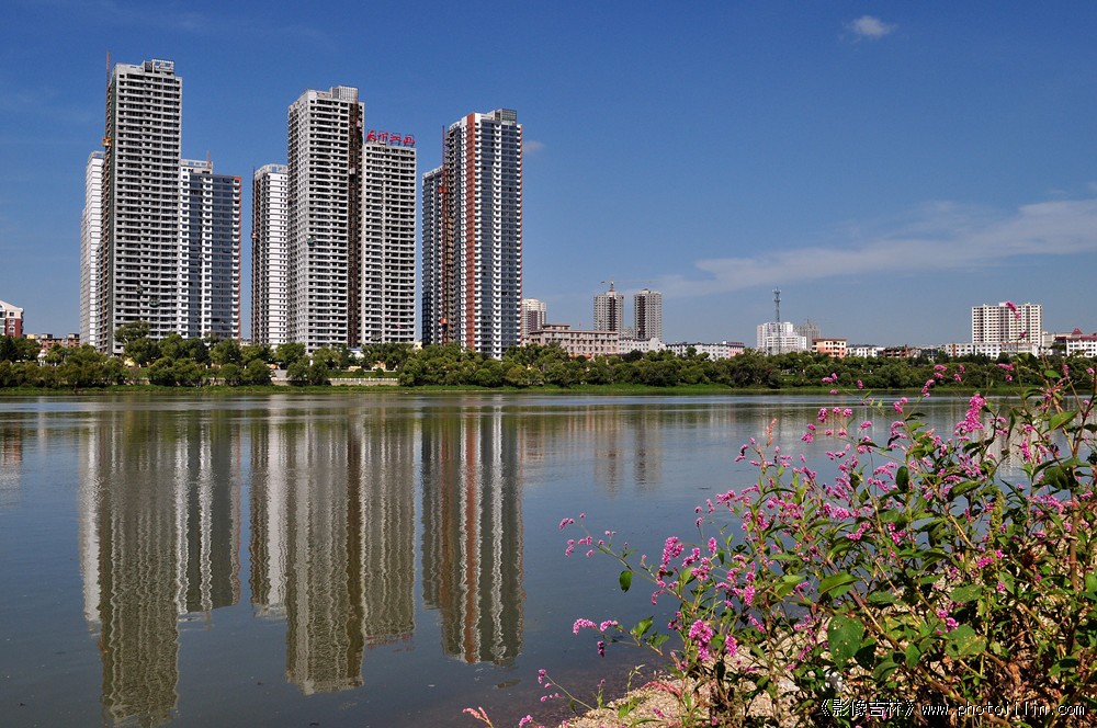 临江美景,高楼林立,湖面如镜,倒影清心。构图合理,色彩艳丽,一展北国江城壮美画面。