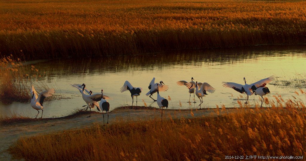 老乐天版主镜头下真有奇观,如此壮观的丹顶鹤群不易拍摄到。金色的阳光下,鹤群翩然起舞,金色的光线透过仙鹤翅膀呈现半透明状态,真正的感受到逆光摄影带来的奇妙光感。