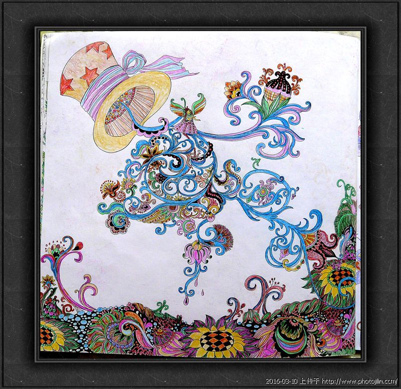 b]近一个时期以来,女儿在网上购买了四本“手绘减压涂色画册,本来是给我外孙女买的图画课本,可是,拿回来一看,黑白画线条复杂多变,不适合孩子涂色,我便欣赏起来,并来了兴趣,我来涂吧,一幅图画完成后,就来了瘾,凡事别有瘾,这瘾劲儿一上来就放不下了。每天一幅,一本三十六幅黑白画,全都涂完。颜色随心所欲,自己搭配。