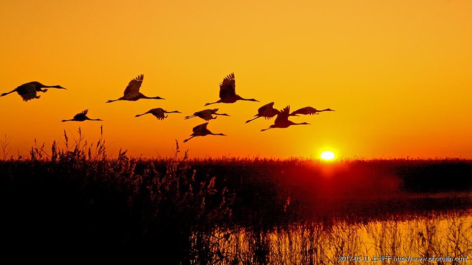» 群鹤迎着朝阳飞