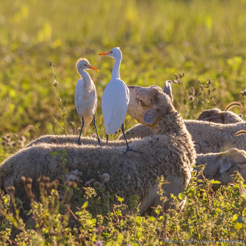 羊背上的牛背鹭