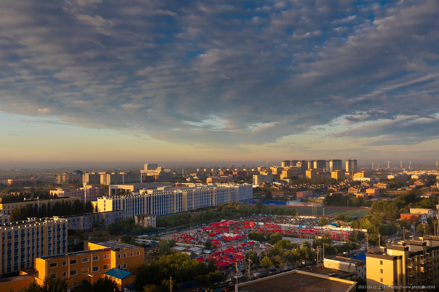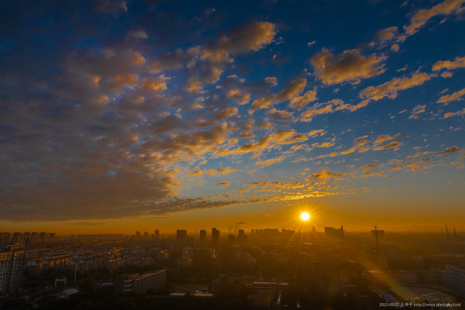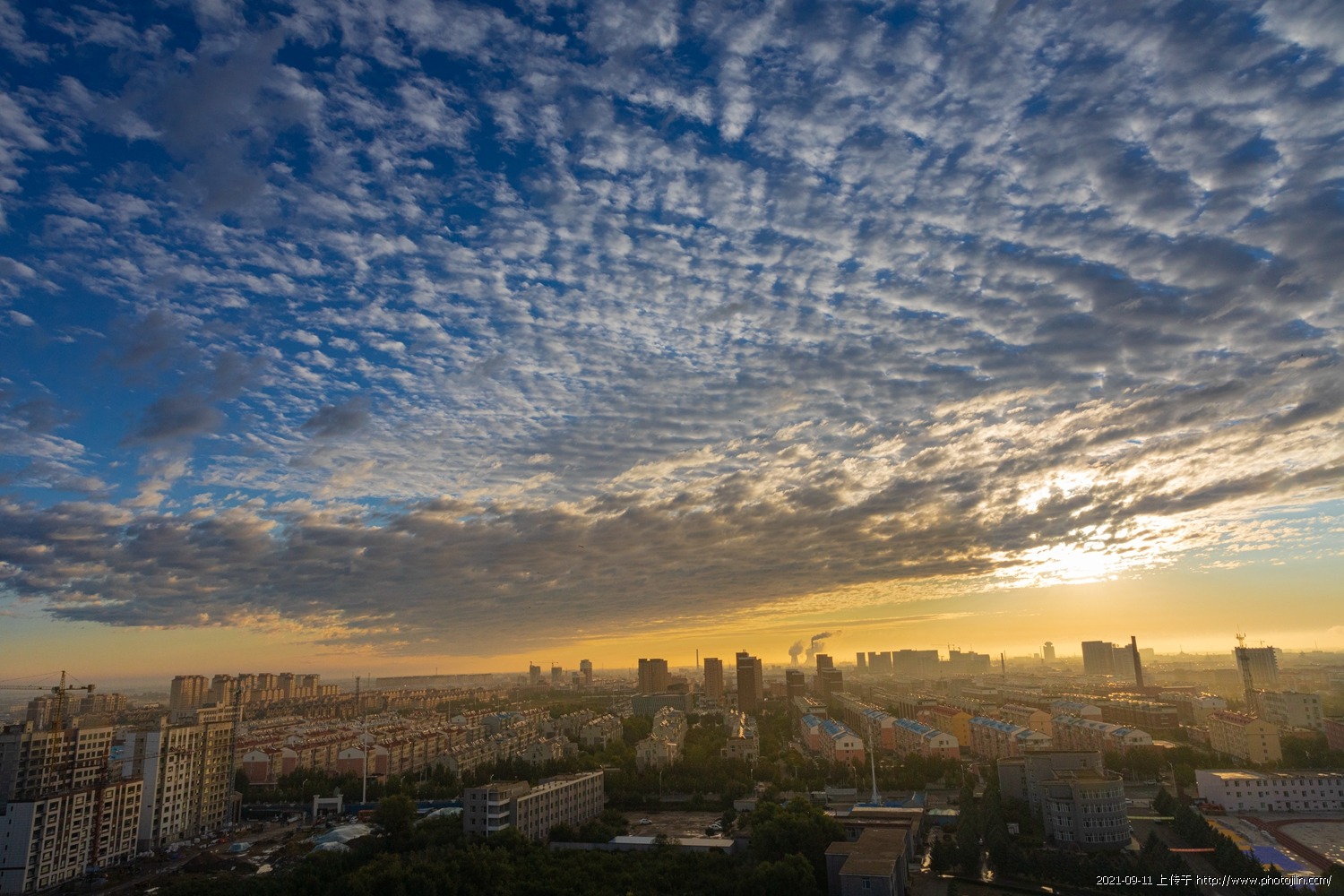 2021年9月10日早晨约上影友在农科院17楼顶,拍日出,今天日出不算理想,天上的流云非常奇观。秋高气爽的季节拍拍云彩也很满足了!