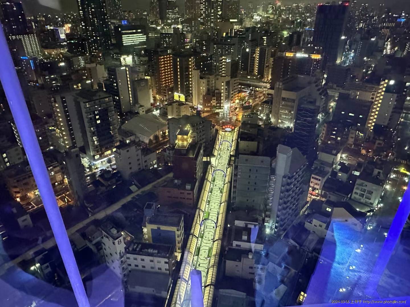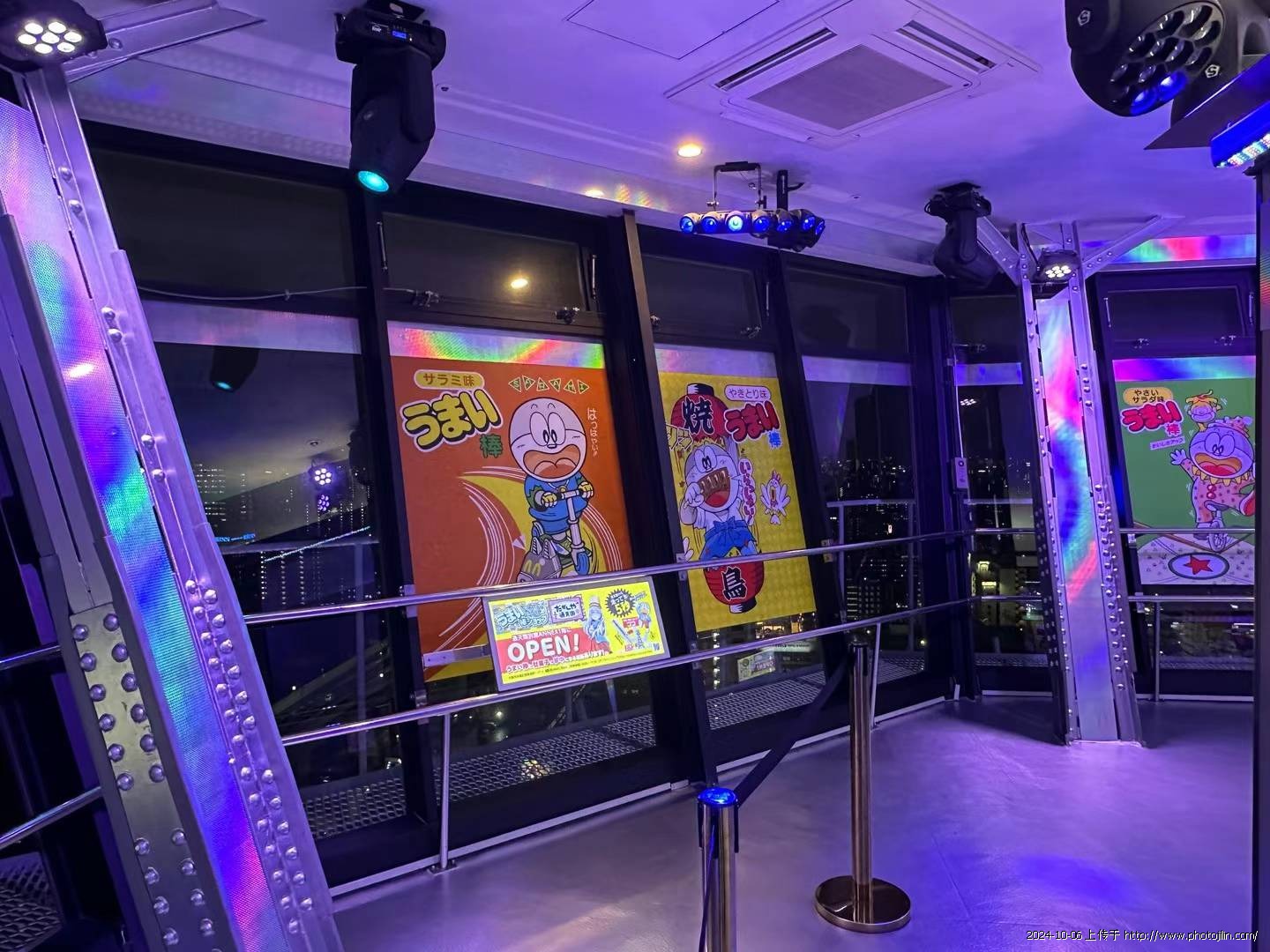 我们步履匆匆,来到通天阁买票进入。在二楼,搭乘展望电梯急速上升。此时,电梯里逐渐暗了下来,顶部出现了比利肯的投影,让人仿佛置身于梦幻之中。