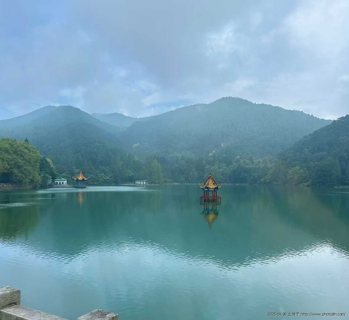 芦林湖犹如翡翠般镶嵌在庐山的群山怀抱之中,湖心亭飞檐翘角,在云雾光影里若隐若现,与澄澈的湖水相映成趣,像是从水墨画卷中跃出的景致。远处山峦层叠,林木葱郁,云雾在山涧游走,一会儿将山峰藏得只剩半个轮廓,一会儿又悄然散去,让满目葱笼尽情铺展。