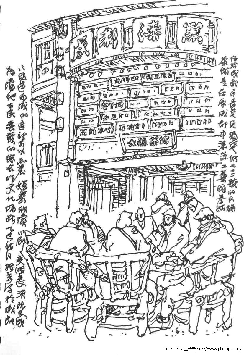 茶馆里,铜壶嘴一扬,白雾腾空,围坐的老人把麻将搓得如潮;品茗闲聊的大妈们喧阗的嘈杂声,更真实的反映了民众的达观。我画他们悠闲的身姿,也画他们欢愉的表情——那表情里有江山,也有柴米油盐。