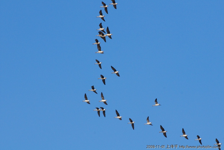 雁南归,整齐的队伍。场面很大,拍的不错。